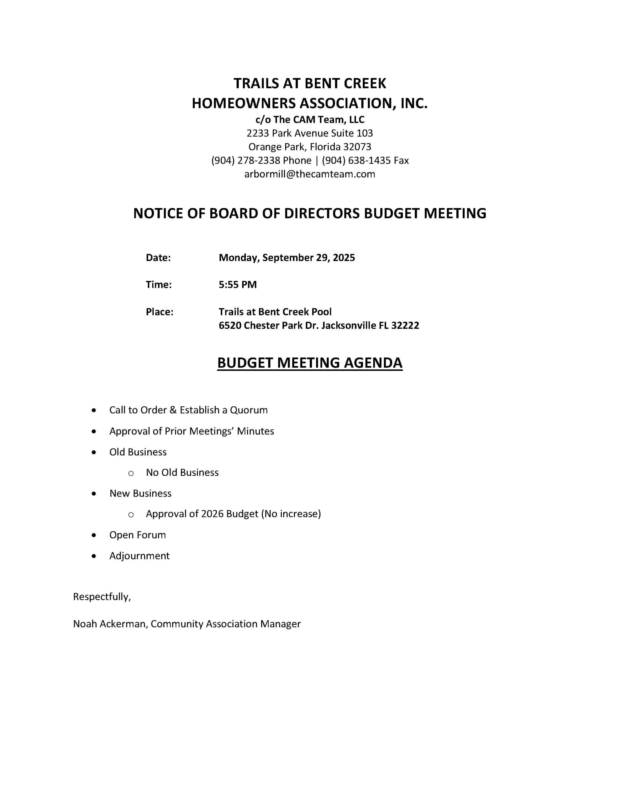 For any questions, please contact The CAM Team by sending an email to estoppels@thecamteam.com